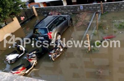 Rain water logged at Shantiniketana Layout due to heavy rainfall in city, due to heavy rainfall in the city, in Bengaluru on Monday 4th September 2017