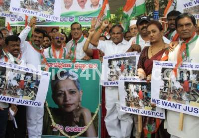 Event Description : KPCC Labour Cell, hold placards at a protest demonstration against the killing of Indian journalist Gauri Lankesh at Anand Rao Circle, in Bengaluru on Wednesday 6th September 2017