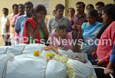 Photo Caption : Relatives of Bharati, Ramesh and Jagadish grieving at mortuary at Victoria Hospital, who died last night after a huge tree fell on their car at Minerva Circle after heavy rainfall, in Bengaluru on Saturday 9th September 2017