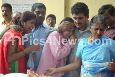 Relatives of Bharati, Ramesh and Jagadish grieving at mortuary at Victoria Hospital, who died last night after a huge tree fell on their car at Minerva Circle after heavy rainfall, in Bengaluru on Saturday 9th September 2017