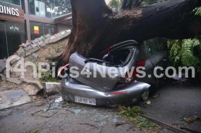 Photo Caption : Tree uprooted on the Road at RV Road due to last night heavy wind rainfall, in Bengaluru on Saturday 9th September 2017