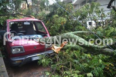 Photo Caption : Tree uprooted on the car at VV Puram Road due to last night heavy wind rainfall, in Bengaluru on Saturday 9th September 2017