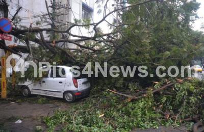 Tree uprooted on the Road at RV Road due to last night heavy wind rainfall, in Bengaluru on Saturday 9th September 2017