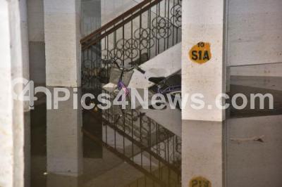 Photo Caption : Rain waterlogged an apartment at Indira Nagar due to last night heavy wind rainfall, in Bengaluru on Saturday 9th September 2017