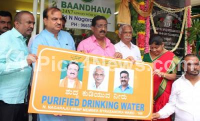 Union Minister Ananth Kumar launching the drinking water ATM card at Ward no 169 Byrasandra, also seen are MLA Vijaya Kumar and others, in Bengaluru on Saturday 9th September 2017