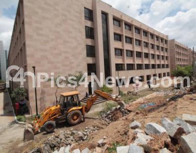 A portion of the wall of the Infosys electronic city campus collapsed on Sunday, while there has been no injury damage, the bicycles, which has been used by the company for the employees as part of the eco friendly initiative to round inside the campus were destroyed as the wall collapsed on the parked area, in Bengaluru on Sunday 10th September 2017