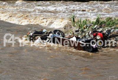 Photo Caption : Tata Ace vehicle which was washed away in the rain water, due to heavy rainfall whole in the city, in Bengaluru on Sunday 10th September 2017