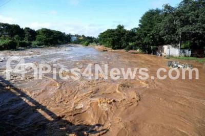 Photo Caption : Overflowing Vrushabavati River, due to heavy rainfall whole night in the city, in Bengaluru on Sunday 10th September 2017