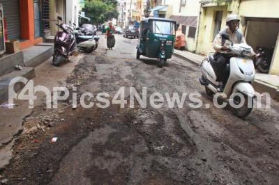 Photo Caption : Bad road conditions at Okalipuram after the recent rainfall, in Bengaluru on Monday 11th September 2017