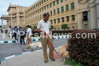 Event Description : Dog Squad in action on the tip of Bomb hoax call at Vidhan Soudha, in Bengaluru on Monday 11th September 2017