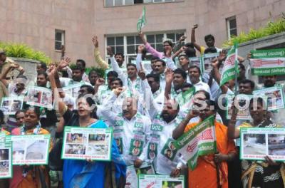 Event Description : JDU leaders and workers staged a protest against the increasing Potholes, Garbage and Chikungunya, Dengue diseases problems in front of the BBMP Head Office, in Bengaluru on Wednesday 13th September 2017