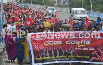 Members A grade Workers association participated in a protest rally from Bengaluru City Railway Station to Freedom Park, demanding for permanent jobs, in Bengaluru on Wednesday 13th September 2017