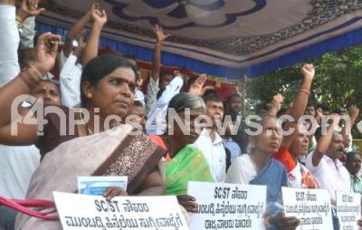 Photo Caption : Members of Karnataka Rajya Dalita Sangarsha Samiti protesting and demanding fulfill their various demands at Gandhi Statue, Anand Rao Circle, in Bengaluru on Friday 15th September 2017