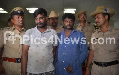 Photo Caption : Accused V Suresh and Srinivasulu, from Andhra Pradesh and members of an Inter state gang held for theft and robbery being produced during a property parade press conference at Police Commissioner Office, in Bengaluru on Saturday 16th September 2017