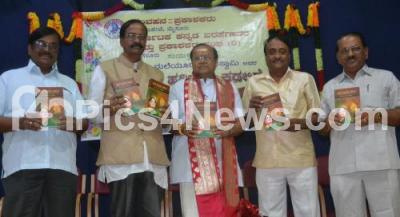 Photo Caption : Vidvan RK Padmanabha with Prof Mallepuram G Venkatesh and others releasing the book “Kapile Haridalu Kadalige†authored by Prof Maleyuru Guruswamy at Kannada Sahitya Parishat, in Bengaluru on Saturday 23rd September 2017