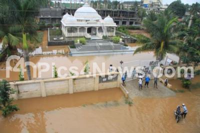 Water logged at Jain Temple due to last night heavy rainfall at Makali, Tumkur Road, in Bengaluru on Wednesday 27th September 2017
