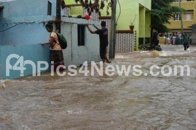 Last night heavy rainfall has left many areas and residents of Mysuru City stranded, houses had sunk into rain water and some senior citizens had to be rescues with the help of fire personnel, and most of the roads were flooded with rain water, in Mysuru on Wednesday 27th September 2017