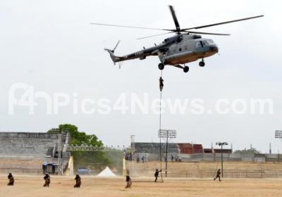 Photo Caption : The Indian Air Force team performing during a rehearsal for the Air Show, as part of the Dasara Festival in Mysuru City, in Bengaluru on Thursday 28th September 2017