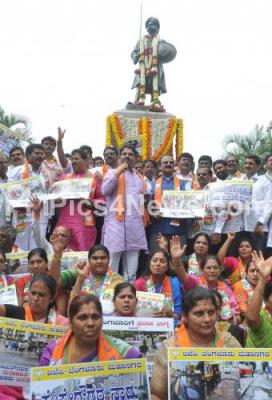 Event Description : BJP Councilors and MLAs staged a protest against the increasing problems of potholes and bad roads against the ruling parties of BBMP, the protest was held in front of Kempegowda Statue, BBMP Circle, in Bengaluru on Thursday 28th September 2017