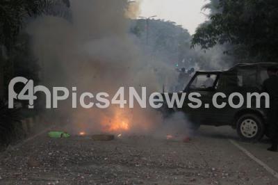Photo Caption : Newly elected Mayor Sampath Raj supporters burst crackers during the Mayor Elections, held at BBMP Head Office, in Bengaluru on Thursday 28th September 2017
