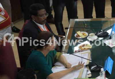 Photo Caption : Regional Commissioner, MV Jayanthi with Manjunath Prasad, BBMP Commissioner administering the Mayor election proceedings at BBMP Head Office, in Bengaluru on Thursday 28th September 2017