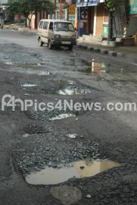 Photo Caption : Crater like potholes due to recent rains have been causing lot of problems to motorists at Kacharakanahalli, Hennur Main Road, in Bengaluru on Monday 2nd October 2017