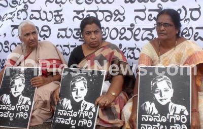Photo Caption : Supporters of Gauri Lankesh protesting and demanding for immediate arrest of accused who killed Journalist Gauri Lankesh, the protest was held at Gandhi Statue, Anand Rao Circle, in Bengaluru on Monday 2nd October 2017