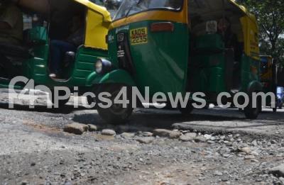 Potholes problem continues to haunt people while travelling at St Marks Road, in Bengaluru on Wednesday 4th October 2017