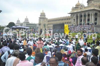 Event Description : Crowd gathered in large numbers for the Sree Maharshi Valmiki Jayanthotsava in front of Vidhan Soudha, in Bengaluru on Thursday 5th October 2017