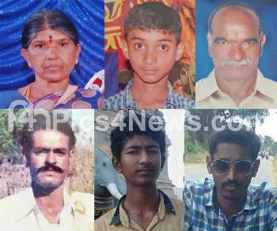 Photo Caption : File photos of Six people ( Top Left to Right) Suvarnamma, Sudeep, Puttegowda, (Bottom Left to Right ) Thimmegowda, Sujay, Umesh, who died when a lightning struck them at Nandinathapura village of Periyapatna Taluk this afternoon, all residents of Hunasewadi village had gone to Nandinathapura for work, to escape from the heavy showers lashing the area, they took shelter in a nearby temple. Unfortunately, lightening stuck them and all were killed instantly at Nandinathapura village, Periyapatna Taluk, Mysuru, on Thursday 5th October 2017