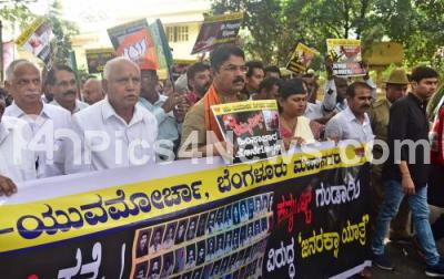BS Yeddyurappa, BJP State President with MLA R Ashok, MP Shobha Karandlaje and BJP workers and members participated in a protest rally against the CPIM government in Kerala, the rally was held from Lalbagh West Gate, in Bengaluru on Monday 9th October 2017