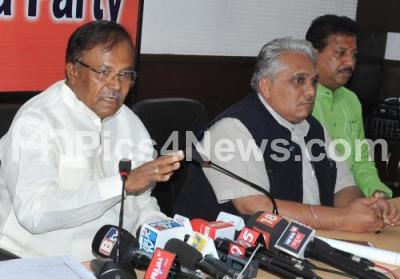 Photo Caption : BJ Puttaswamy, Chairman BJP Backward Class Committee with G Madhusudhan, MLC, and MLA Vishwanath seen addressing a press conference at BJP Office, in Bengaluru on Tuesday 10th October 2017