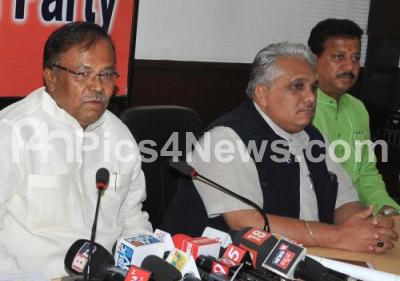 Photo Caption : BJ Puttaswamy, Chairman BJP Backward Class Committee with G Madhusudhan, MLC, and MLA Vishwanath seen addressing a press conference at BJP Office, in Bengaluru on Tuesday 10th October 2017
