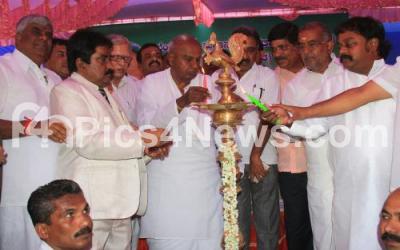 Photo Caption : HD Devegowda, JDS Supremo with JDS leaders HD Revanna, MLA Gopalaiah and others inaugurated the 115th birth anniversary celebration of Sri Jayaprakash Narayan at JDS Office, in Bengaluru on Wednesday 11th October 2017