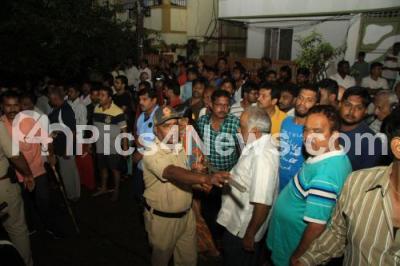 Photo Caption : Crowd gathered at the spot where 35 year old Priest Vasudev, who was washed away in the storm water at Kurubarahalli, in Bengaluru on Friday 13th October 2017