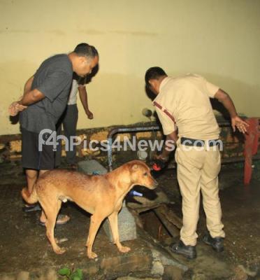 Event Description : Fire brigade personnel searching at the spot where 35 year old Priest Vasudev, who was washed away in the storm water at Kurubarahalli, in Bengaluru on Friday 13th October 2017