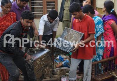 Photo Caption : House hold and electronic material destroyed in the last night heavy rainfall at Kurubarahalli, in Bengaluru on Saturday 14th October 2017