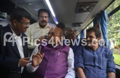 Photo Caption : KC Venugopal, Karnataka Congress In Charge with Minister HM Revanna and others flagged off the new KSRTC busses to Kerala during a program at KSRTC Head Office, in Bengaluru on Saturday 14th October 2017