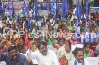 Photo Caption : Members of Karnataka Dalita Sangarsha Samiti protesting to fulfill their various demands at BBMP, in Bengaluru on Monday 16th October 2017