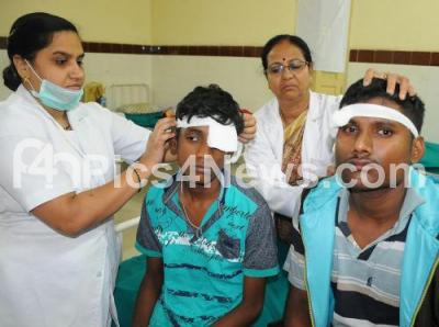 Photo Caption : Tapan Kumar and Pradeep suffered eye injuries while bursting crackers, celebrating Diwali Festival, getting treatment at Minto Hospital, in Bengaluru on Friday 20th October 2017