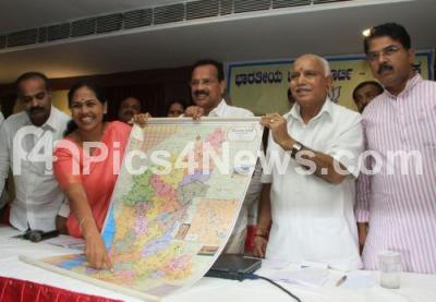 Photo Caption : BS Yeddyurappa, BJP State President with Union Minister DV Sadananda Gowda, R Ashok,MLA, MP Shobha Karandlaje and others inaugurated the route map for the upcoming BJP Parivarthana Yatra at Hotel Parag, in Bengaluru on Monday 23rd October 2017