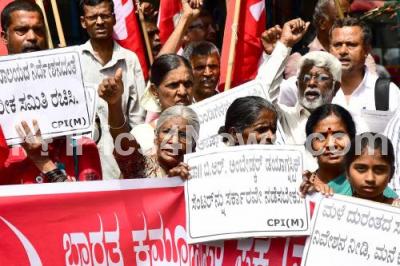 Photo Caption : Members of CPIM protesting to fulfill their various demands at Sirur Park, in Bengaluru on Thursday 26th October 2017