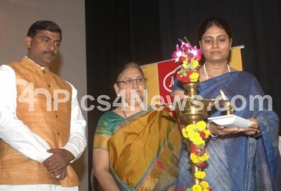 Event Description : Muralidhar Rao, BJP national Gen Sec and In Charge Karnataka Party affairs with Dr Snehalat C Nadiger, Principal NMKRC college for Women, Anupriya Patel, Union Minister of state Health and family welfare at the inauguration of one day “Women for Good Governance” Conclave organized by “Bharat Niti” , a unit of Janhit Foundation at NMKRV College auditorium, in Bengaluru on Saturday 28th October 2017