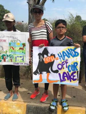 Photo Caption : Residents, students and citizens from all walks of life took part in a massive rally to create awareness to save Pattandur Agrahara Lake on ECC road, Whitefield, in Bengaluru on Saturday 28th October 2017