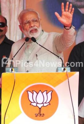 Photo Caption : PM Narendra Modi addressing during his meeting with BJP workers at HAL Airport, in Bengaluru on Sunday 29th October 2017