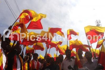 Photo Caption : Mayor Sampath Raj distributing Karnataka State Flags to public on the eve Kannada Rajyotsava celebrations organized by KAVIKA, in Bengaluru on Tuesday 31st October 2017