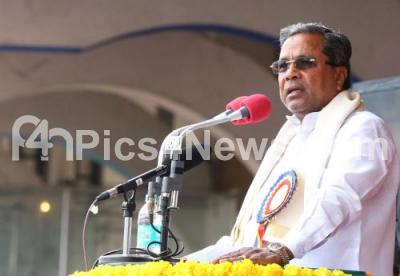 Photo Caption : Chief Minister of Karnataka Siddaramaiah addressing during the 62nd Kannada Rajyotsava Day (Karnataka State Formation day) program at Kanteerava Stadium, in Bengaluru on Wednesday 1st November 2017