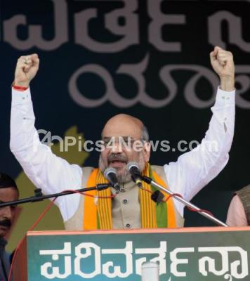 Photo Caption : Amit Shah, BJP National President addressing during the flagging off program of BJP Parivarthana Yatra, in Bengaluru on Thursday 2nd November 2017