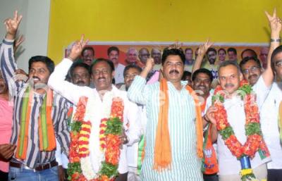 Photo Caption : BJP Leaders R Ashok, Muniraju and BJP workers during BJP meeting Kottigepalya, in Bengaluru on Sunday 5th Nov 2017