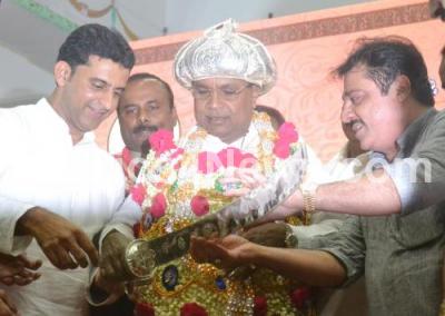 Photo Caption : CM Siddaramaiah being felicitated by MLA Zameer Ahmed Khan, Minister Roshan Baig and others at the Tipu Jayanti celebration program at Vidhan Soudha, organised by Government of Karnataka, in Bengaluru on Friday 10th November 2017